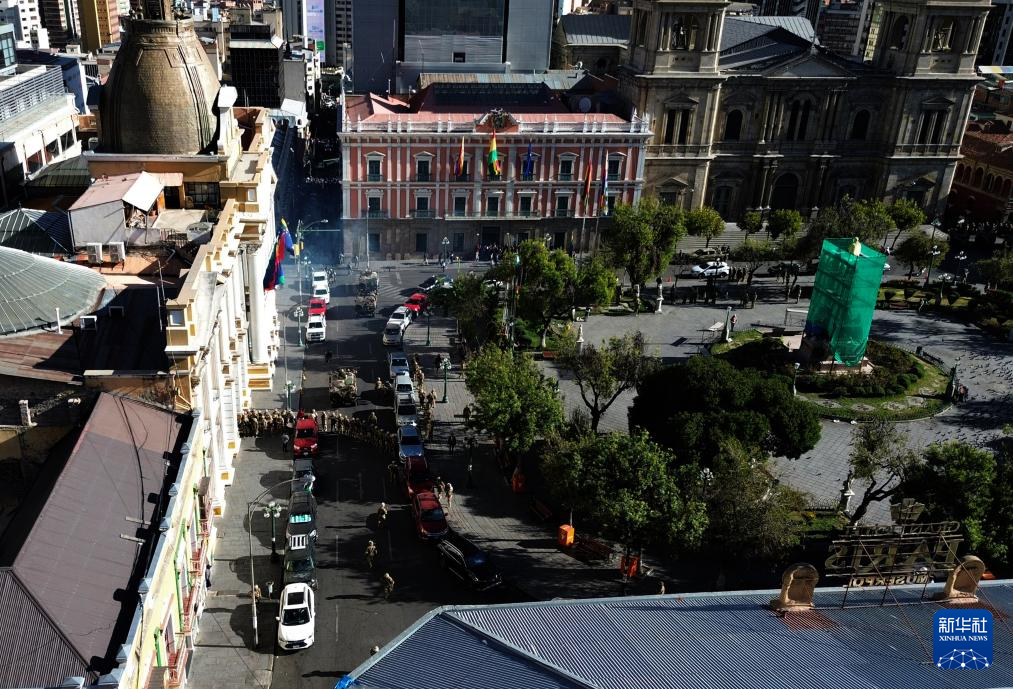 這是6月26日拍攝的玻利維亞拉巴斯總統(tǒng)府附近的廣場(無人機照片)。(圖源:新華社)