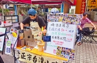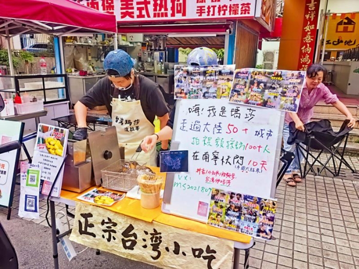 圖:為籌措旅行經(jīng)費,臺青陳瑪莎和友人在南寧開了一個“快閃”小攤售賣臺灣小吃。\香港《大公報》記者曾萍攝