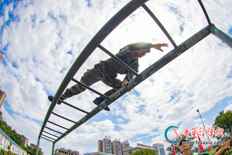 2024年7月4日,武警廣西總隊(duì)桂林支隊(duì)組織召開(kāi)軍人運(yùn)動(dòng)會(huì)暨創(chuàng)破紀(jì)錄比武競(jìng)賽。圖為參賽官兵迅速通過(guò)云梯。(施晨洲 攝)