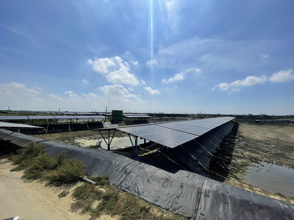 圖為魚塭漁電共生光電板盡量設(shè)于岸堤,減少遮蔽于池面積。(圖源:臺灣“中時新聞網(wǎng)”)
