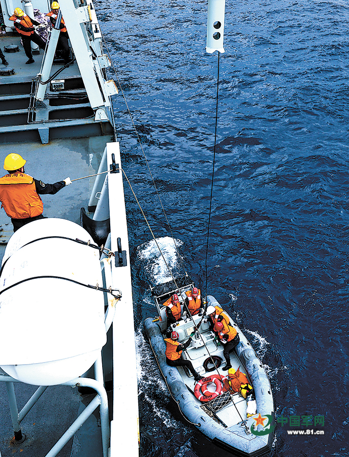 吊放小艇,開展搜救。