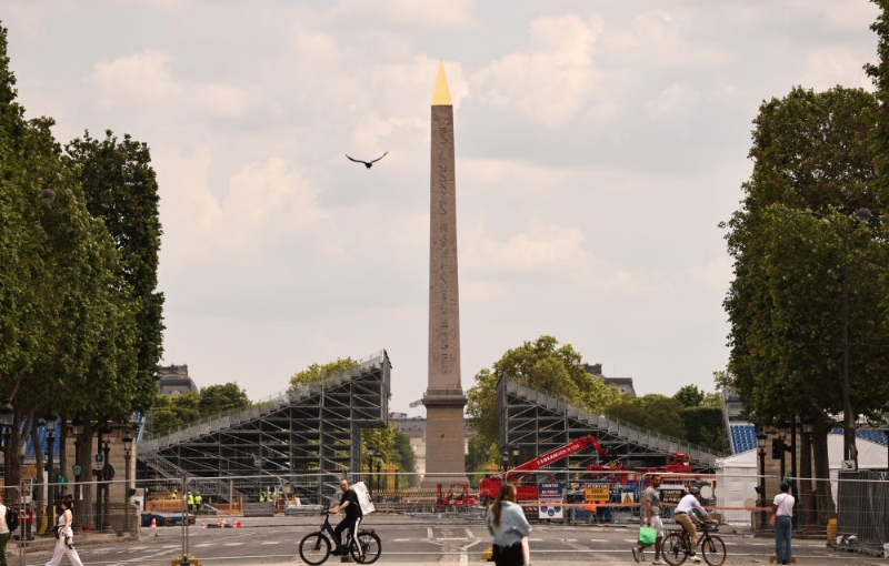 這是6月4日在位于法國(guó)巴黎市中心的協(xié)和廣場(chǎng)拍攝的臨時(shí)比賽場(chǎng)地搭建現(xiàn)場(chǎng)。新華社記者 高靜 攝
