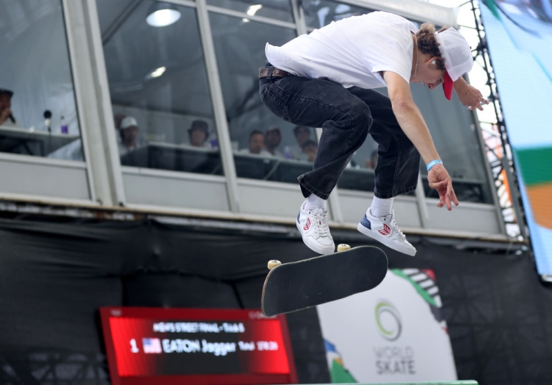 在所有男子街式選手中,美國(guó)滑板名將賈格爾·伊頓是最有能力挑戰(zhàn)日本隊(duì)的人。天賦滿滿的伊頓11歲就成了當(dāng)時(shí)最年輕的世界極限運(yùn)動(dòng)會(huì)選手,他也是不多見的能夠兼項(xiàng)參加碗池和街式的滑手。