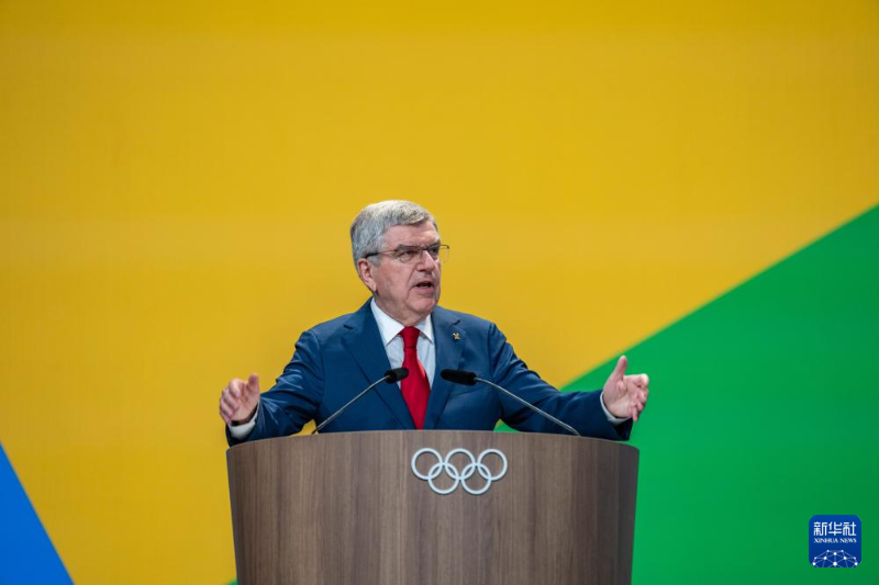 7月23日,國際奧委會主席巴赫在會上致辭。新華社記者 孫非 攝