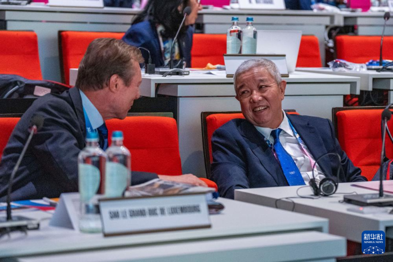 7月23日,國際奧委會委員、中國奧委會副主席于再清(右)在會議開始前。新華社記者 孫非 攝