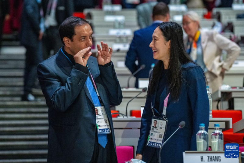 7月23日,國際奧委會委員張虹(右)在會議開始前。新華社記者 孫非 攝
