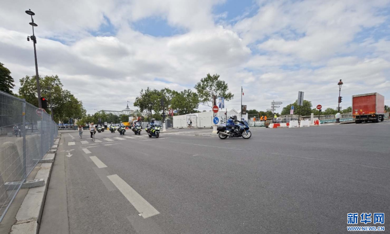 巴黎塞納河邊的巡邏警察和施工車輛。新華網(wǎng)發(fā)(陳碩 攝)