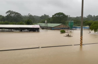 白河區(qū)虎山里白水溪從昨晚暴漲溢堤,溪水灌進(jìn)附近一處禽場,水淹將近一層樓高,溪水目前仍持續(xù)暴漲。