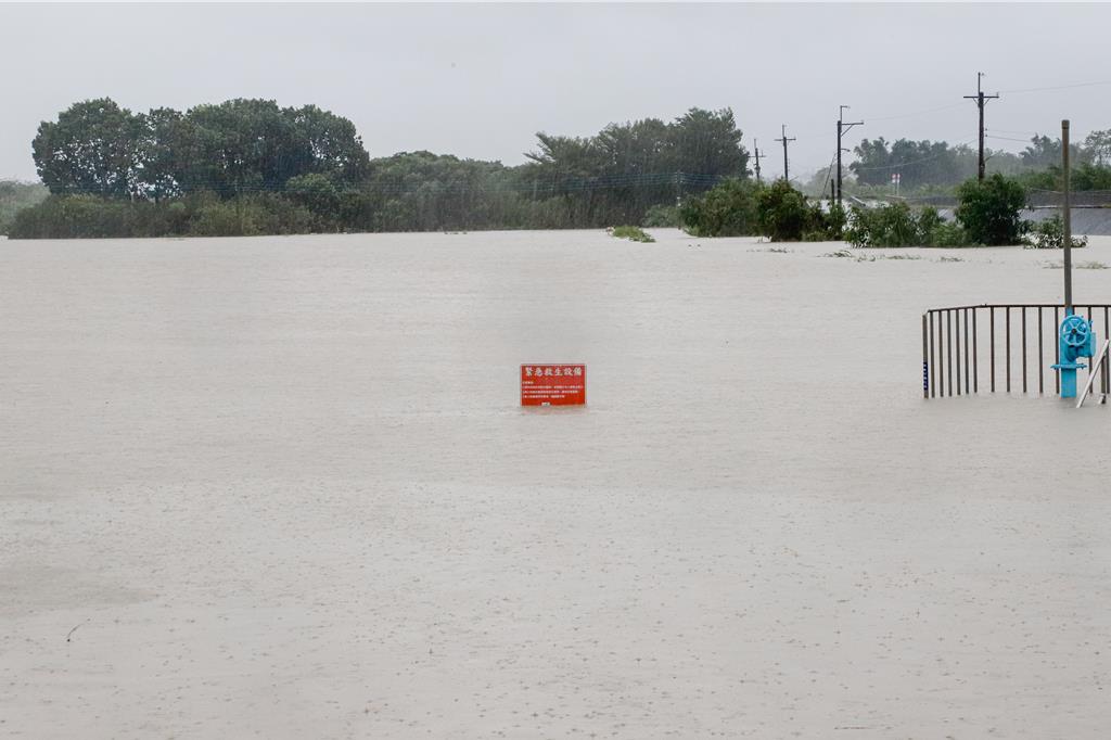 八掌溪暴漲溢堤,嘉義縣水上鄉(xiāng)一帶嚴(yán)重淹水。(臺灣“中時新聞網(wǎng)”)
