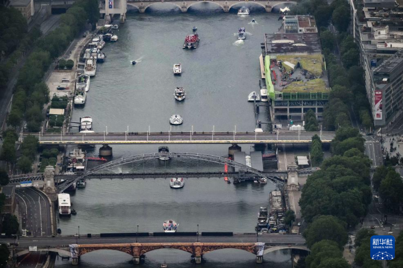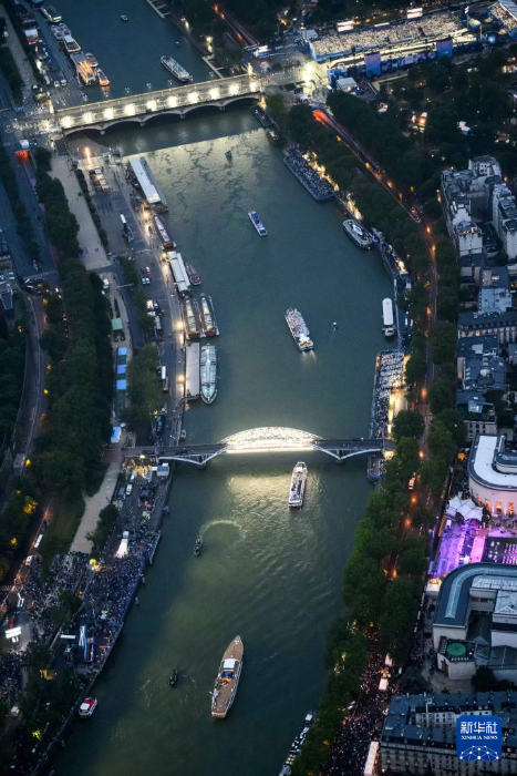 7月26日,第33屆夏季奧林匹克運(yùn)動(dòng)會(huì)開(kāi)幕式在法國(guó)巴黎舉行。這是從直升機(jī)視角拍攝的塞納河。新華社發(fā)(POOL照片/利昂內(nèi)爾·博納旺蒂爾)