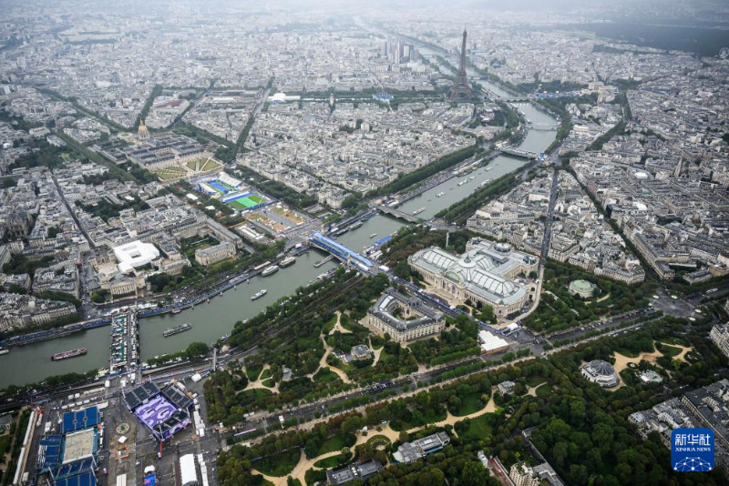 7月26日,第33屆夏季奧林匹克運(yùn)動(dòng)會(huì)開(kāi)幕式在法國(guó)巴黎舉行。這是從直升機(jī)視角拍攝的巴黎城市景觀。新華社發(fā)(POOL照片/利昂內(nèi)爾·博納旺蒂爾)