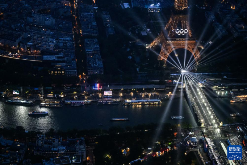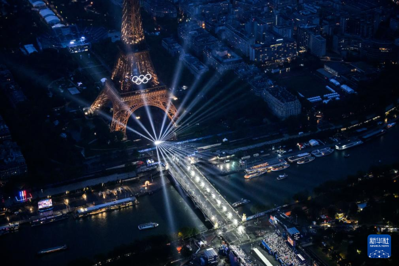 7月26日,第33屆夏季奧林匹克運(yùn)動(dòng)會(huì)開(kāi)幕式在法國(guó)巴黎舉行。這是從直升機(jī)視角拍攝的埃菲爾鐵塔。新華社發(fā)(POOL照片/利昂內(nèi)爾·博納旺蒂爾)