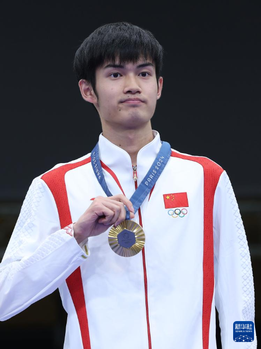 7月27日,中國選手盛李豪在頒獎儀式上。新華社記者 趙丁喆 攝
