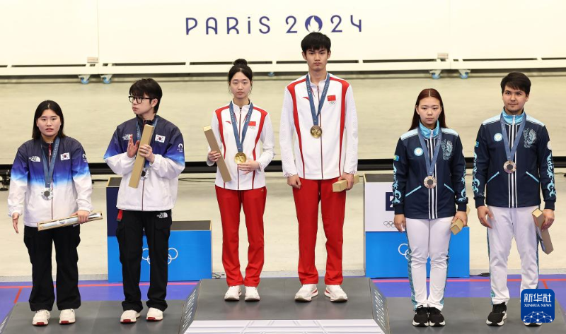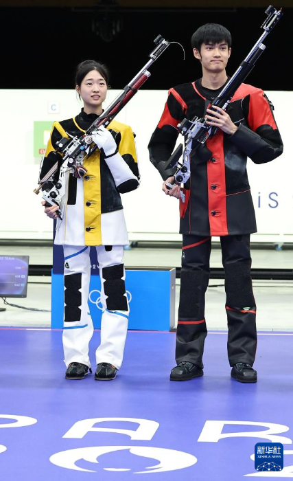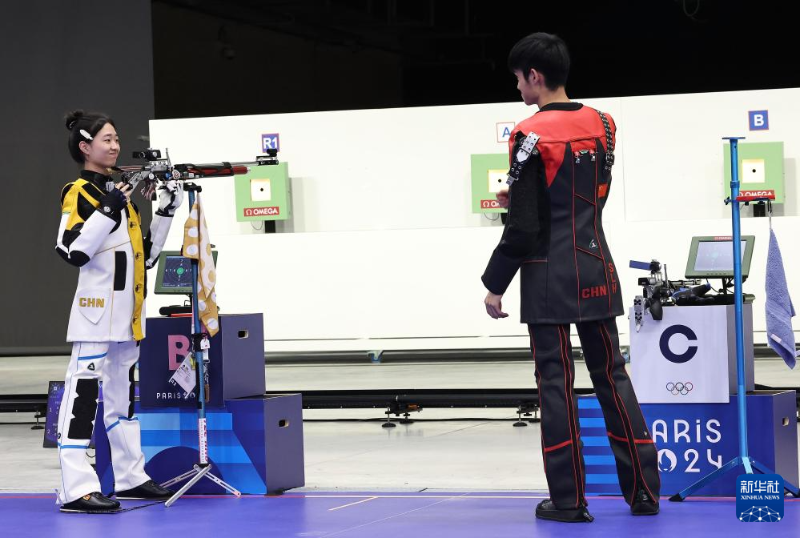 當(dāng)日,在法國沙托魯舉行的巴黎奧運(yùn)會射擊10米氣步槍混合團(tuán)體決賽中,中國選手黃雨婷/盛李豪奪冠,贏得巴黎奧運(yùn)會首枚金牌。