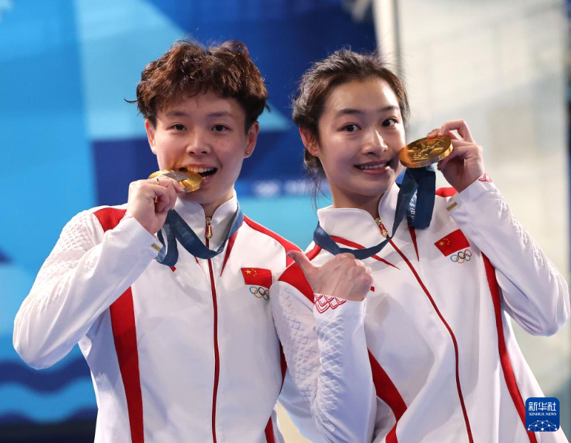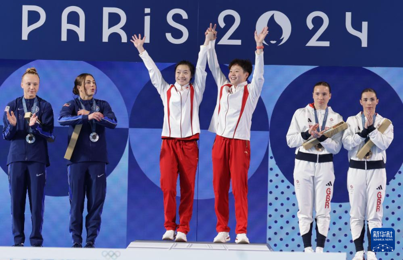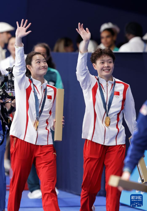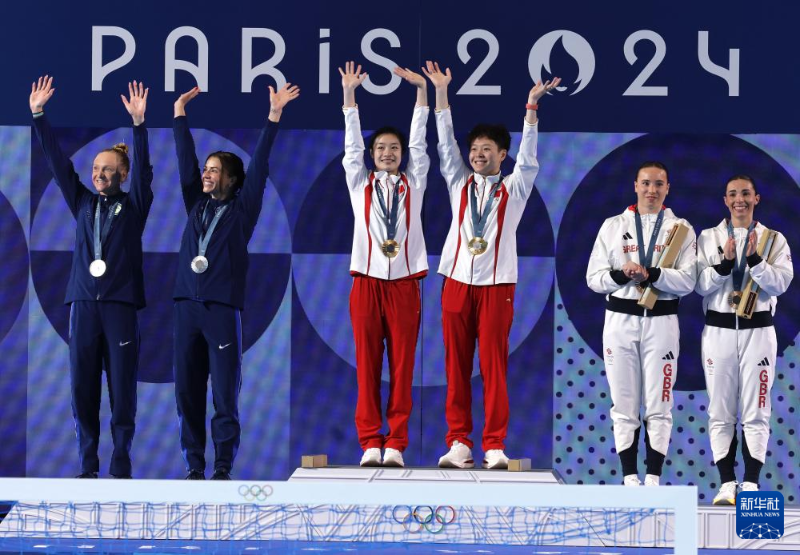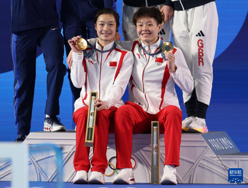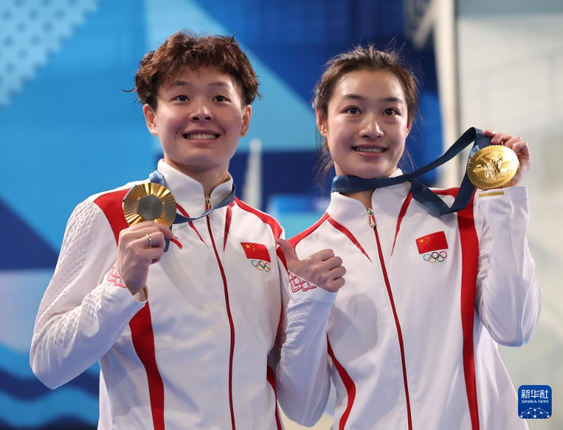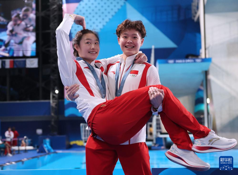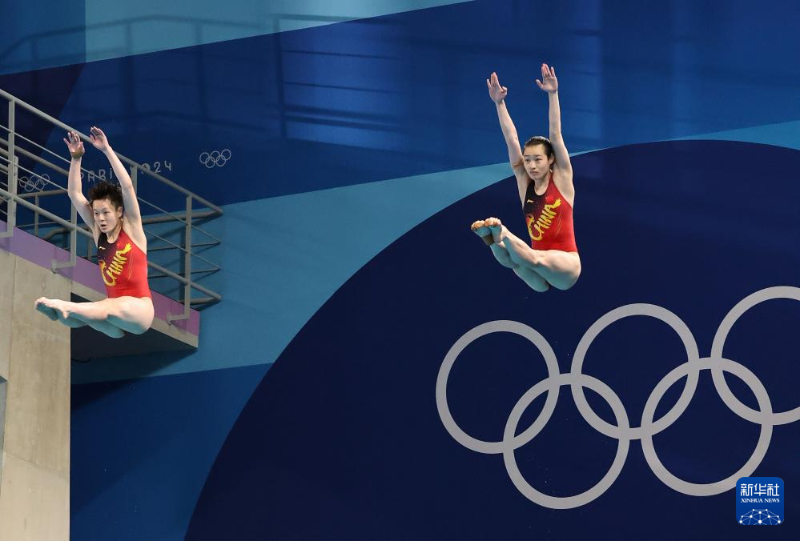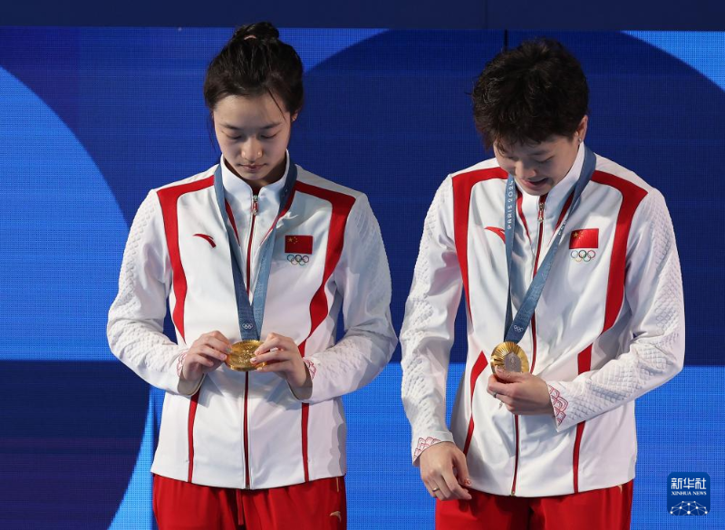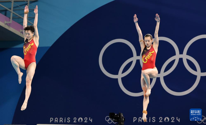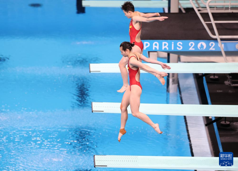 當(dāng)日,在巴黎奧運會跳水女子雙人3米板決賽中,中國選手昌雅妮/陳藝文奪得金牌。