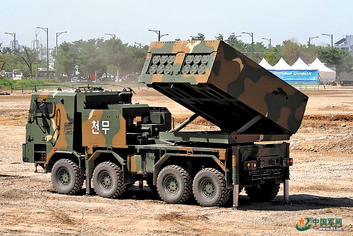 再次,追求更高的打擊精度。隨著制導技術的融入,火箭炮的打擊不再是“大水漫灌”,逐步具備了對縱深目標、點狀目標進行精確打擊的能力。今年的歐洲國際防務展上,韓國韓華公司對K239“春武”火箭炮能發(fā)射戰(zhàn)術地對地導彈(KTSSM)這一點進行了強調,宣稱圓概率誤差小于2米。其他參展火箭炮的宣傳,也不約而同地強調了其遠射程和高精度打擊能力。