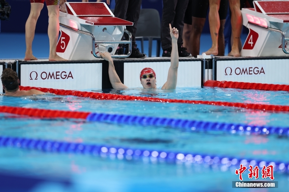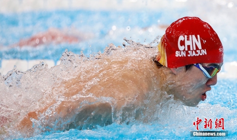 當(dāng)?shù)貢r間8月4日,在巴黎奧運會游泳項目男子4x100米混合泳接力決賽中,由徐嘉余、覃海洋、孫佳俊、潘展樂組成的中國隊奪得金牌。圖為孫佳俊在比賽中。