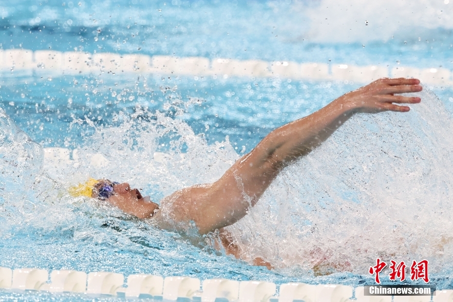 當(dāng)?shù)貢r間8月4日,在巴黎奧運會游泳項目男子4x100米混合泳接力決賽中,由徐嘉余、覃海洋、孫佳俊、潘展樂組成的中國隊奪得金牌。圖為覃海洋在比賽中。