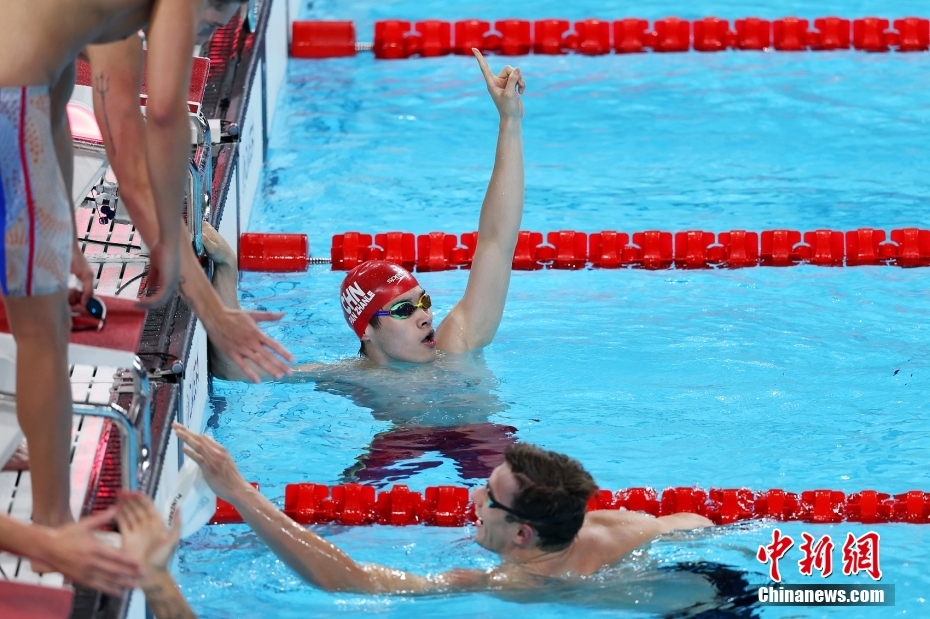 當(dāng)?shù)貢r間8月4日,在巴黎奧運會游泳項目男子4x100米混合泳接力決賽中,由徐嘉余、覃海洋、孫佳俊、潘展樂組成的中國隊奪得金牌。圖為場上運動員相互致意。