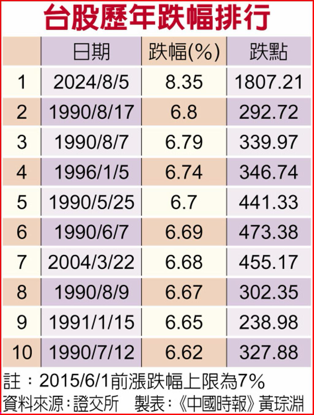臺(tái)股歷年跌幅排行 臺(tái)灣《中國時(shí)報(bào)》制圖