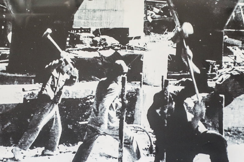 2019年7月4日,鞍鋼集團博物館內(nèi)展出的1949年工人修復工廠的照片(翻拍照片)。(圖源:新華社)