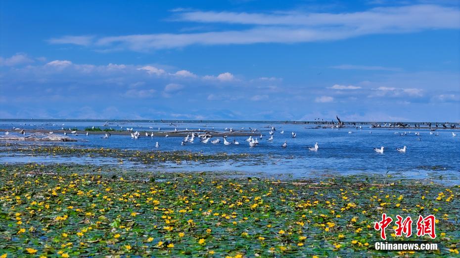 博斯騰湖碧波蕩漾,荇菜花爭(zhēng)相綻放。