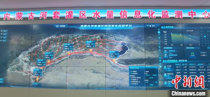 圖為內(nèi)蒙古河套灌區(qū)水量信息化監(jiān)測中心的數(shù)字墻(局部),實時顯示著灌區(qū)各項數(shù)據(jù)?!≈行律缬浾?徐雪瑩 攝