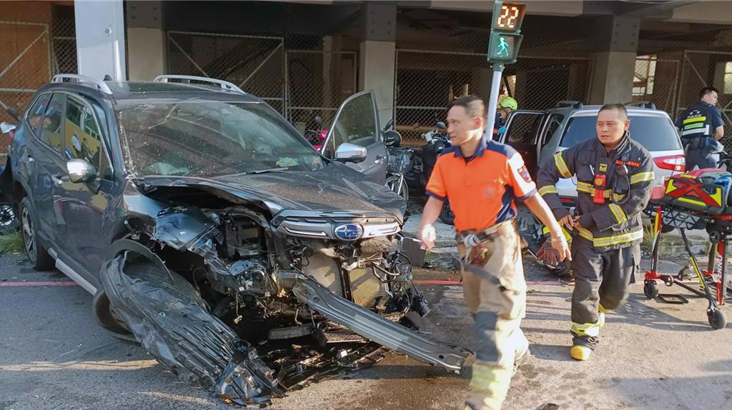 消防局當時獲報,立即出動多輛救災(zāi)車輛到場搶救,到達時還有一名駕駛受困在變形車體內(nèi),警消立即破壞車體將人救出,隨后將現(xiàn)場4名傷者分別送醫(yī)急救,不幸的是現(xiàn)場有一名摩托車司機因為撞擊當場死亡,至于車禍原因及相關(guān)責任,正由警方調(diào)查處理中。