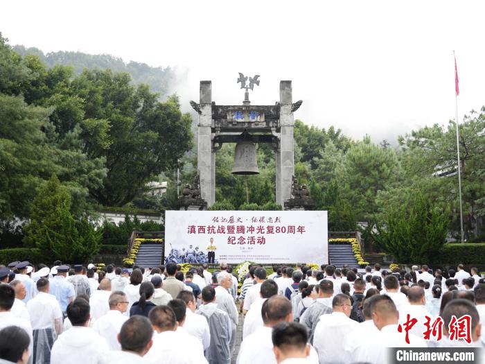 中新社騰沖8月17日電 (記者 胡遠航)滇西抗戰(zhàn)暨騰沖光復(fù)80周年紀念活動17日在云南騰沖舉辦。來自海峽兩岸的代表共同敬獻花籃、撞響警鐘,緬懷忠烈。