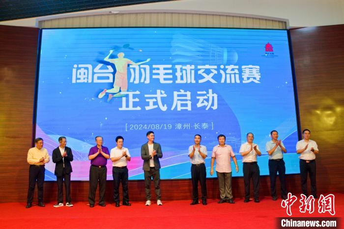 中新社福建長(zhǎng)泰8月19日電 (廖珍妹)閩臺(tái)羽毛球交流賽活動(dòng)19日在位于福建省漳州市長(zhǎng)泰區(qū)的連緣書畫院?jiǎn)?dòng)。來自臺(tái)北市、屏東縣的羽毛球選手及教練團(tuán)隊(duì)一行43人將在漳州開啟為期7天的文化體育交流活動(dòng)。