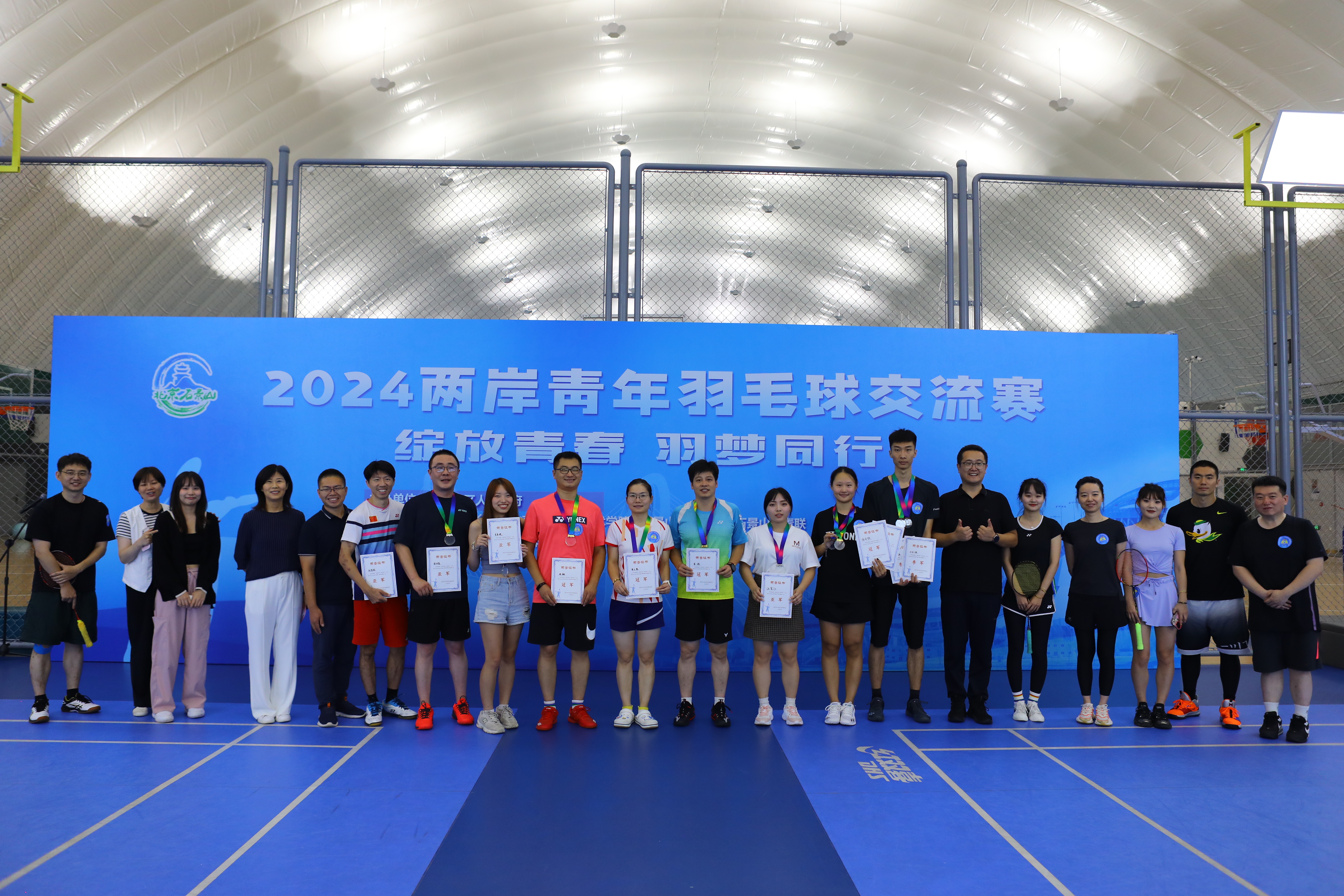 此次交流賽由石景山區(qū)人民政府主辦,石景山區(qū)臺辦、北京工業(yè)職業(yè)技術(shù)學(xué)院、石景山區(qū)體育局、石景山區(qū)青聯(lián)聯(lián)合承辦。北京市臺辦副主任張磊,石景山區(qū)委常委錢行,北京工業(yè)職業(yè)技術(shù)學(xué)院黨委副書記魏曉東,北京市羽毛球協(xié)會秘書長周志輝出席活動,石景山區(qū)臺辦、區(qū)體育局、區(qū)青聯(lián)相關(guān)部門負責(zé)人參加活動。開幕式上,石景山區(qū)臺辦主任高竹在致辭中表示,石景山區(qū)積極拓展和創(chuàng)新京臺青年交流的載體和渠道,開展豐富多彩的友好交流活動,為兩岸青年成長成才營造良好環(huán)境。同時,向島內(nèi)的青年朋友們發(fā)出誠摯的邀請,歡迎臺灣青年朋友們帶著自己的家人、朋友到北京親身感受京西福地、“雙奧之區(qū)”的色彩、味道和熱情,在石景山這片熱土追夢、筑夢、圓夢。