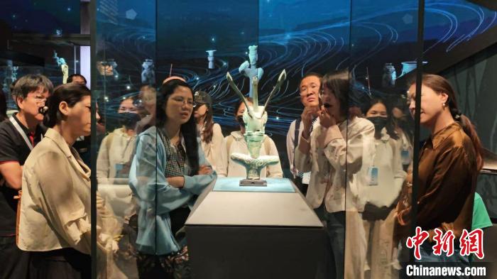 “從前透過(guò)圖片認(rèn)識(shí)三星堆文物,多被其正面的‘大眼睛臉譜’吸引;此次觀展特地在講解員引導(dǎo)下觀察青銅像的后腦,才發(fā)現(xiàn)有的編發(fā)辮,有的戴發(fā)笄?!迸税啬瓯硎緡@為觀止、大開(kāi)眼界,特地買了兩本書(shū)以便進(jìn)一步學(xué)習(xí)。來(lái)自廣西的臺(tái)灣教師李贊虔也說(shuō),展陳文物工藝精美,更難得的是歷經(jīng)數(shù)千年仍不改樣貌,相信隨著考古發(fā)掘不斷深入,會(huì)有更多驚奇的文物寶藏得以問(wèn)世。