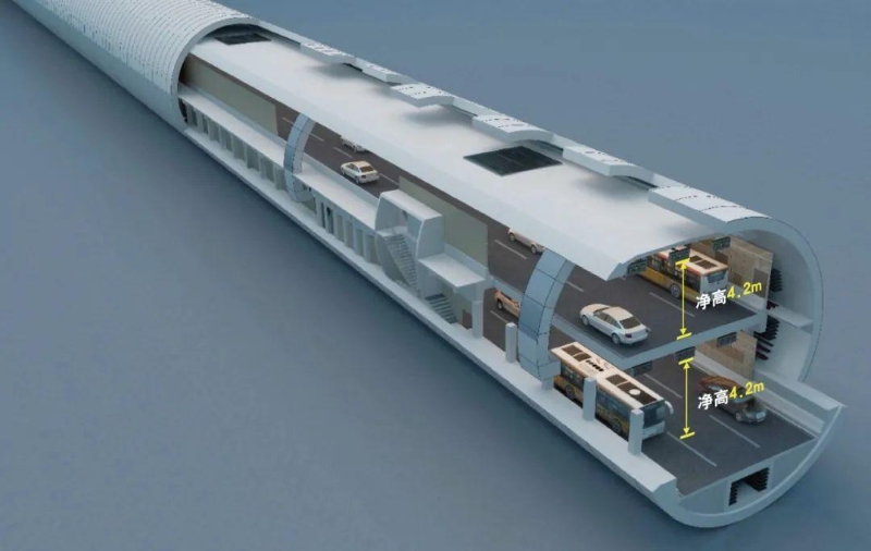 得益于超大開挖直徑,隧道采用單洞雙層構(gòu)造,可實(shí)現(xiàn)上下各3車道雙向通車。超大直徑盾構(gòu)隧道的應(yīng)用,可有效節(jié)省城市地下空間,預(yù)計(jì)節(jié)約15%的投資成本,同時(shí),隧道單層凈高4.2米,可滿足通行公交、消防及救援車輛要求,極大提高通行能力。
