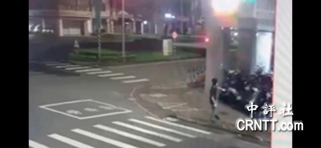 監(jiān)視器畫面看出5日深夜11時(shí)許被可疑男子砸雞蛋。(香港“中評(píng)社”)