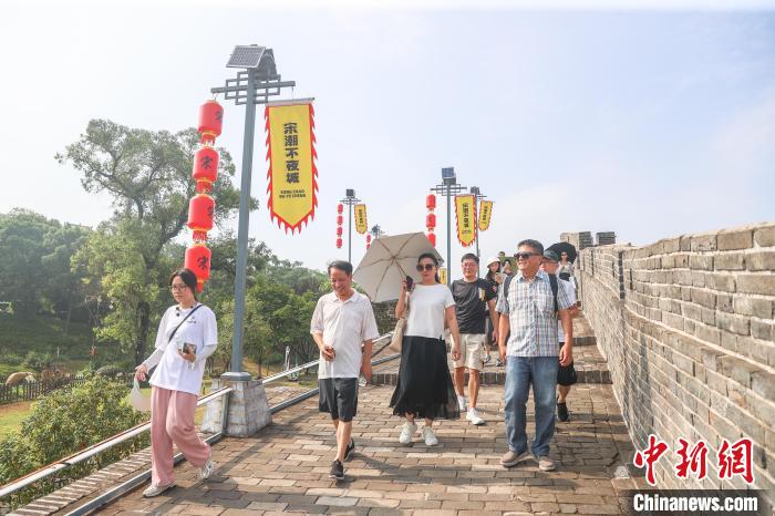 圖為兩岸媒體人登上宋代古城墻參觀,贛州古城墻是目前全國(guó)保存最為完好的宋代磚城墻,修建于北宋年間,城墻平均高7米,現(xiàn)存長(zhǎng)度約3.6千米,為全國(guó)重點(diǎn)文物保護(hù)單位。中新社記者 劉力鑫 攝
