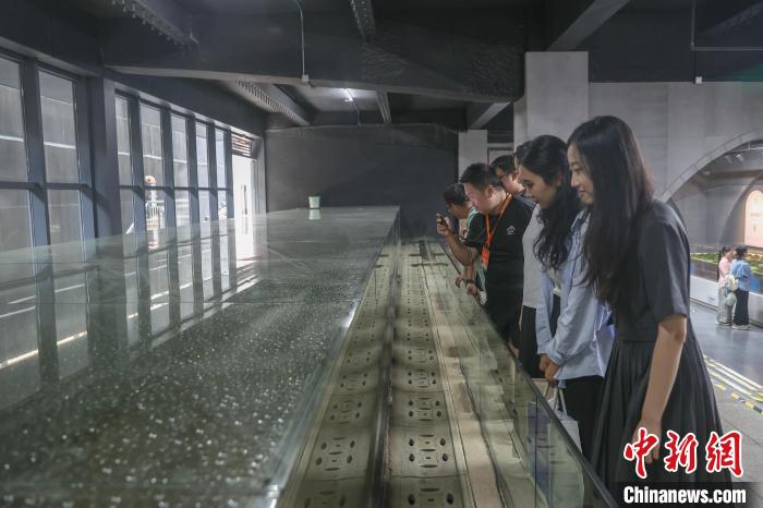 圖為兩岸媒體人在福壽溝博物館參觀,該博物館是中國(guó)唯一一座地下排水系統(tǒng)博物館,福壽溝是埋藏在贛州河套老城區(qū)地下,一座歷經(jīng)千年,至今仍在使用的中國(guó)古代城市下水道工程。中新社記者 劉力鑫 攝