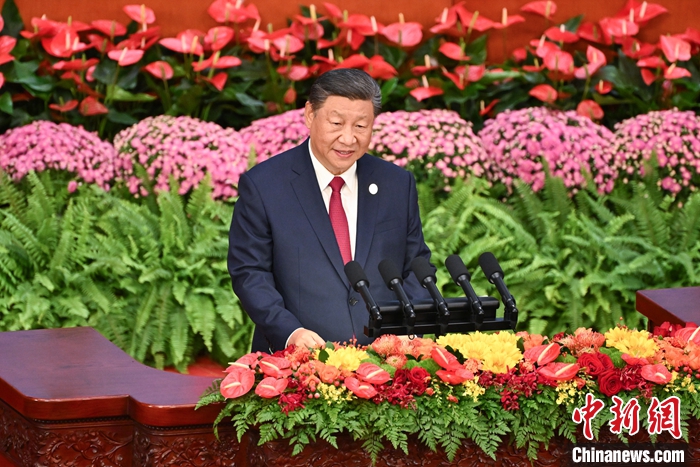 9月5日上午,中國(guó)國(guó)家主席習(xí)近平在北京人民大會(huì)堂出席中非合作論壇北京峰會(huì)開(kāi)幕式并發(fā)表題為《攜手推進(jìn)現(xiàn)代化,共筑命運(yùn)共同體》的主旨講話。 中新社記者 田雨昊 攝