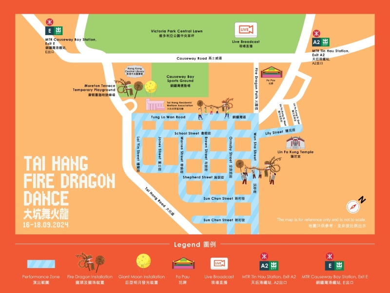 大坑舞火龍盛會今年的表演范圍,由浣紗街伸延至銅鑼灣道,并增加定點表演區(qū),讓更多現(xiàn)場觀眾親身感受火龍澎湃魅力。維園更一連三晚(9 月 16至 18 日)現(xiàn)場直播舞火龍盛況,實時直送歡樂。