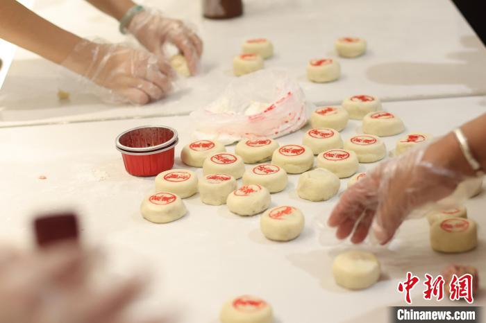 臺(tái)胞臺(tái)屬們一起動(dòng)手制作蘇式月餅。 中新社記者 泱波 攝