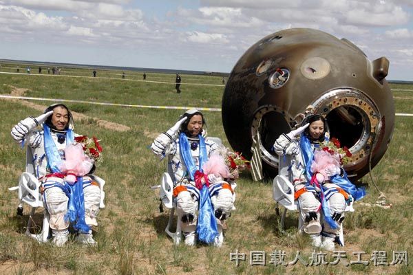 6月26日,神舟十號(hào)飛船返回艙順利降落在內(nèi)蒙古中部主著陸場(chǎng)預(yù)定區(qū)域,3名航天員平安健康出艙,神舟十號(hào)成功返回。