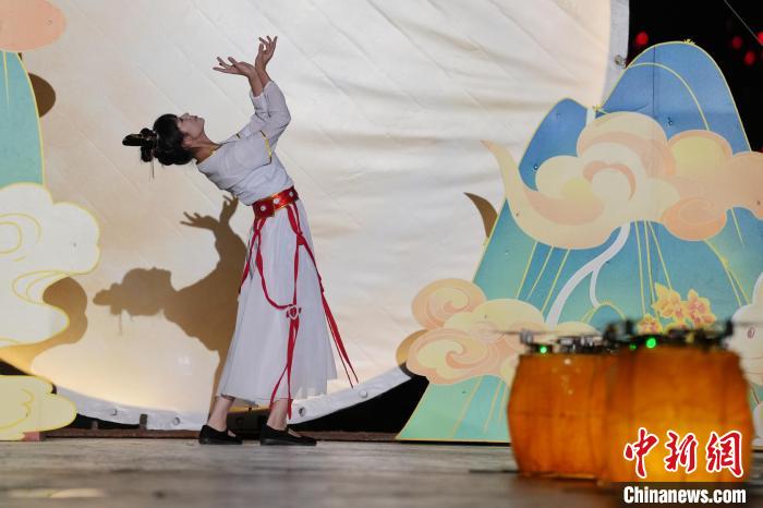 圖為舞者在孔明燈下翩翩起舞。中新社記者 楊華峰 攝