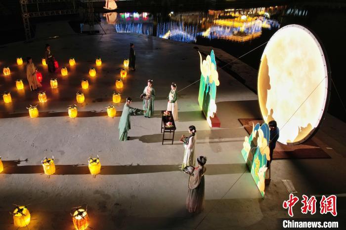 圖為工作人員行祭月禮。(無(wú)人機(jī)照片)中新社記者 楊華峰 攝