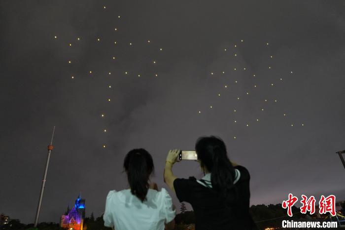 圖為工人家屬拍攝無(wú)人機(jī)組成的中秋漢字。中新社記者 楊華峰 攝