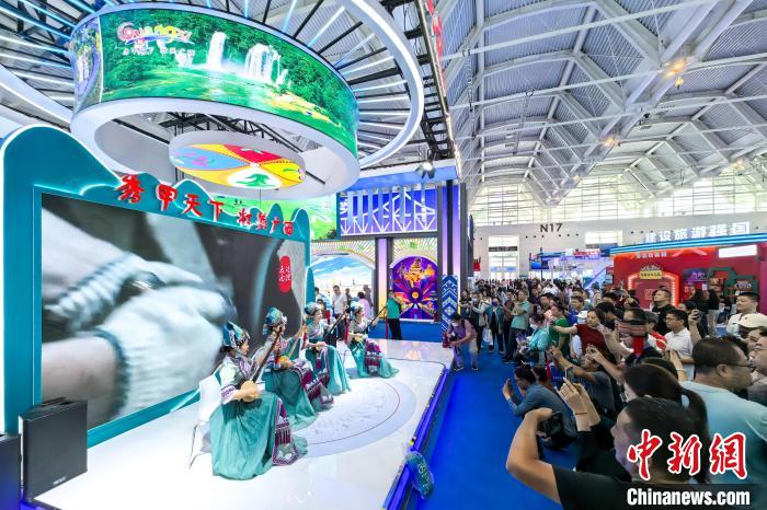 圖為民眾在廣西展位觀看文藝演出。中新社記者 佟郁 攝
