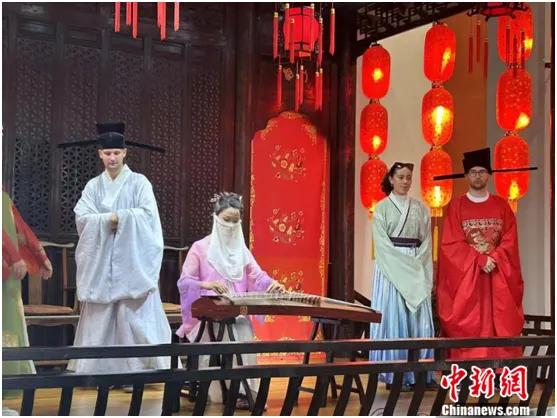 2024年8月,同濟大學全球海外人才代表團一行30余人抵達鹽城,開展為期兩天的當?shù)乜萍嘉幕涣骺疾熘?,活動中,幾位留學生換上漢服,體驗中華傳統(tǒng)文化之美。受訪者供圖