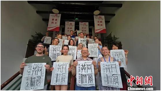 2024年8月,同濟大學國際文化交流學院漢語碩士志愿者與來訪的德國醫(yī)學生開展學術(shù)交流,所有參與者用篆書寫就“同舟共濟”,留下了美好的回憶。受訪者供圖