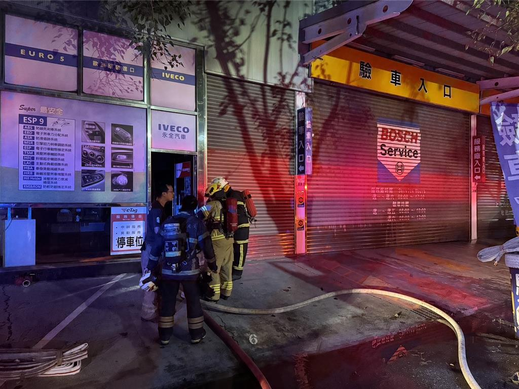 這起火警發(fā)生在凌晨3點44分,消防局接獲保全公司通報指仁德中山路一家2層樓挑高鐵皮鋼構(gòu)的驗車場起火,保全第一時間發(fā)現(xiàn)有火 ,用滅火器嘗試滅火 ,但發(fā)現(xiàn)沒有效果,趕緊報案。