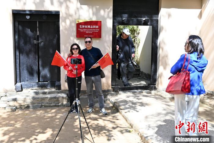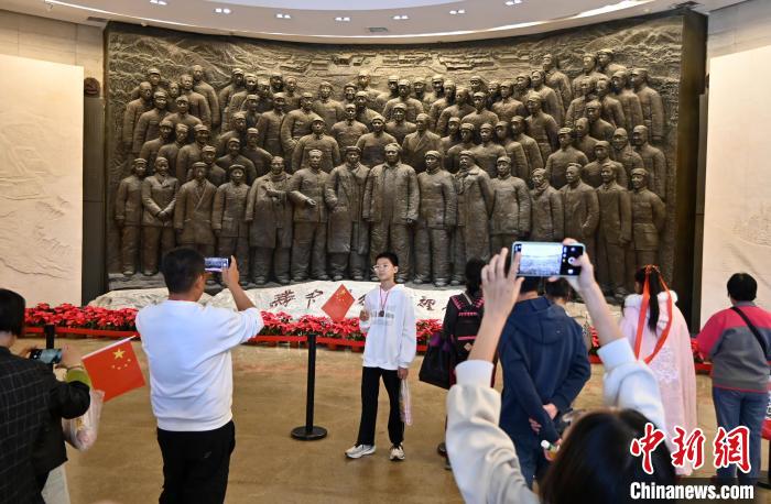 10月1日,游客在河北省平山縣西柏坡景區(qū)拍照留念。國慶假期首日,源源不斷的游客來到革命圣地西柏坡參觀旅游。中新社記者 翟羽佳 攝