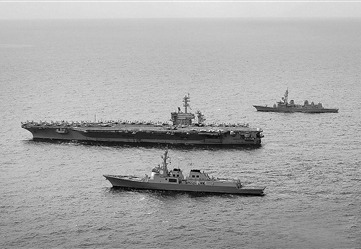 參加美日韓“自由之刃”聯(lián)合軍演的艦艇編隊(duì)。