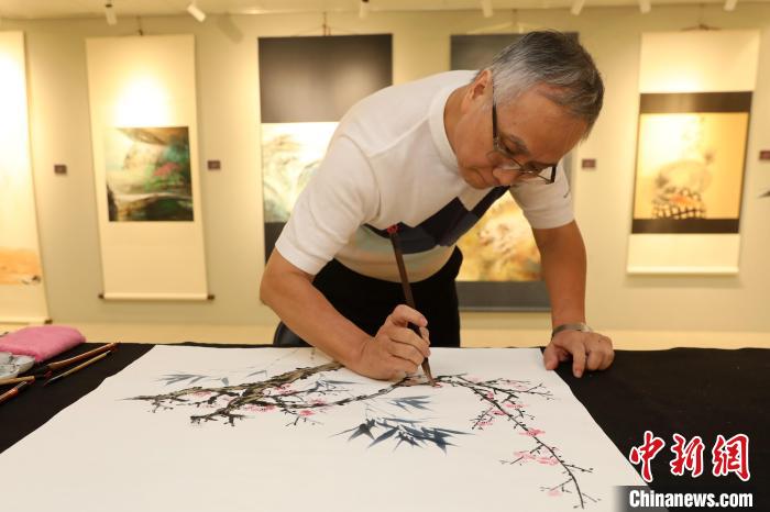 臺灣藝術(shù)大學(xué)書畫藝術(shù)學(xué)系教授吳恭瑞在展覽現(xiàn)場創(chuàng)作了水墨畫,新北市新莊書畫會理事長林欽商則揮毫寫下“見賢思齊”等書法作品。